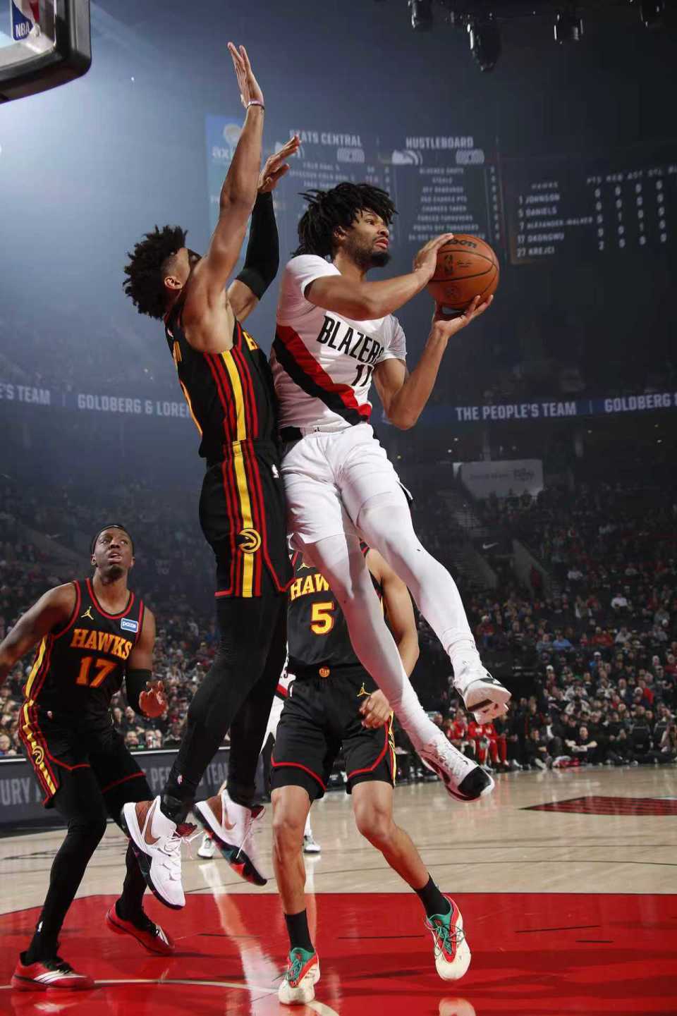 中场休息回来,老鹰连续两节单节得分30+,开拓者本场第二次单节得分30+。开拓者被拉开58-65落后,开拓者反扑追到差3分,老鹰连得5分扩大8分优势。开拓者随后被拉开68-77落后,开拓者多点开花打出一波17-4攻势反超4分,双方交替领先缠斗,开拓者单节34-31净胜3分,三节结束开拓者88-87反超老鹰。前三节比赛,老鹰三分29中12,麦科勒姆18分、杰伦12+10+5、奥孔古19分与丹尼尔斯10分;开拓者三分37中10,夏普22+8+4、霍勒迪与格兰特均10分,杨瀚森依然未登场。